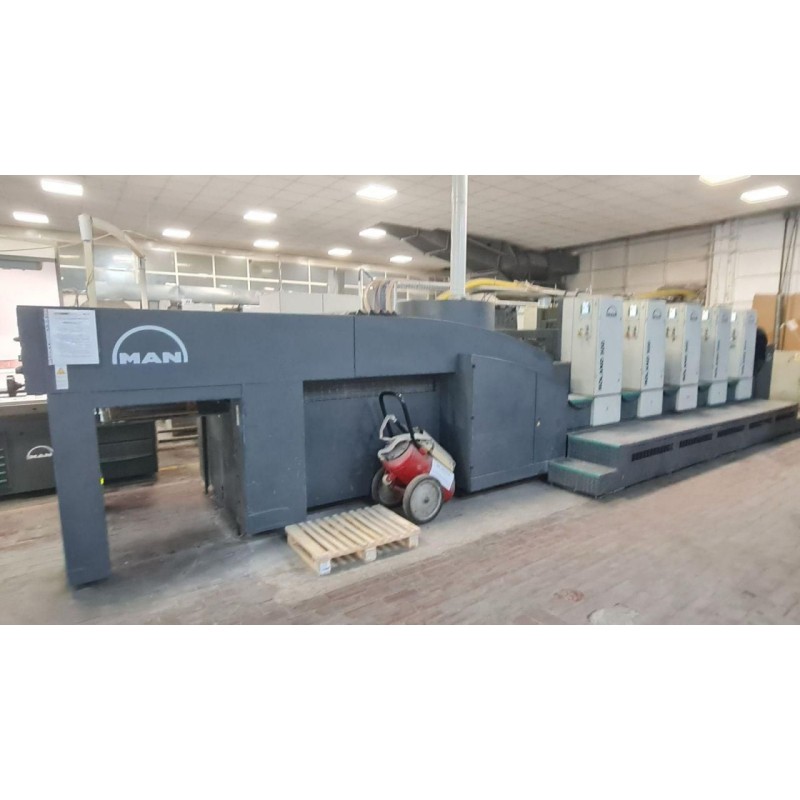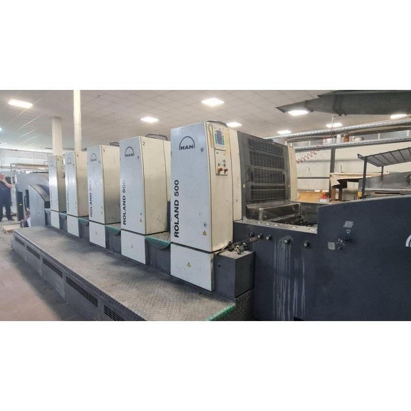 ROLAND 504 0B PLV 4/0-2/2- Premium speed: 18.000 sh/hr- Sheet size: 530 x 740 mm- Stock thickness: 0.06 - 0.6 mm- Roland Deltamatic dampening with Technotrans combi cooling unit for ink and water + Combi Control PPL power plate loading- automatic ink, blanket and impression cylinder washing device- Perfecting 4/0-2/2- Premium inking- Premium Quick Format Change- ColorPilot D - Densitometry Ink measurement and regulation device integrated in the matching desk, consisting of: - - measuring head track for measuring of strips on- - ATsheet gripper edge or sheet tail edge - Quickchange coater with kammerrakel system- Extended delivery- IR dryer Roland Seccomatic- Books and manuals- 2 pcs anilox rollers-