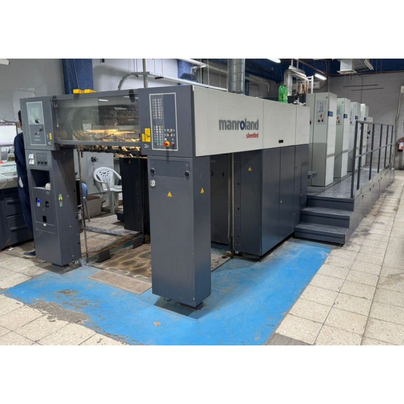 Man-Roland 704-3B?- Format: 74 x 105 cm- High Print- Roland Deltamatic dampening??- Automatic Plate Change PPL- Press Pilot Control panel- QuickChange ColourSmart- LCS - Low Coverage Stabilisation- Automatic blanket and impression cylinders washers- Select Cleaning System- Automatic rollers washers Quick Change Wash- ink temperature control- Air Glide- Technotrans Beta C Refrigeration- SelectAir Station F (air supply cabinet)- QuickChange Air- Grafix Powdermax Powder Spray- High Pile Delivery- 16.000 sheets/hour