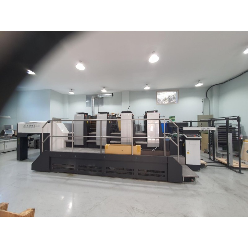 GL437- Year 2022 installed in 2023- KHS-AI- -Self learning funktion- -Self diagnosis- -Plate register preset- PQC-S- SAPC- Cylinder cocking- Paper thicknis preset- Pre loader/local suppy- Air sde lay- Register- Pitless skid loader- Auto blanket cleaner/wet cloth-