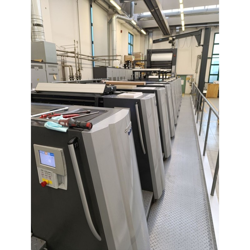 XL106-6 LYY-1L- HYBRID MACHINE- 6 COLORS + VARNISH HYBRID (UNIT 7) + DOUBLE DRYER UNIT (UNIT 8+9) + 1 COLOR (UNIT 10) + VARNISH (UNIT 11)- COLD FOIL /FOILSTAR- AUTOPLATE ADVANCED- X3 EXTENDED DELIVERY- MACHINE RAISED 525 MM- PRINECT PRESS CENTER XL2 CONSOLE- PRINECT INSTANT GATE- WALLSCREEN APPLICATION - PRINECT COLOR ASSISTANT PRO- PRINECT DRYSTAR ADVANCED IR- PUSH TO STOP- AXIS CONTROL- PRESET PLUS FEEDER - FEEDER WITH NON STOP DEVICE- STREAM CONTROL- PULL LAY DOUBLE SHEET DETECTOR- SHEET TRAVEL STREAM CONTROL- IMPRESSION CYLINDER WASH UP DEVICE- BLANKET WASH UP DEVICE WITH CLOTH- AIR TRANSFER SYSTEM- 4 INTERDECK BETWEEN ALL PRINTING UNITS- 1 FIXED INTERDECK AFTER VARNISH UNIT- 2 LAMPS AT DELIVERY (POSSIBILITY TO ADD A 3RD LAMP)- COMBISTAR CAN WATERCOOLED- INK MIST EXTRACTION- AUTOMATIC INK AGITATOR- AUTO INKING UNIT WASHUP DEVICE- POWDERSTAR AP 500 CAN- AIRSTARPRO AIRCOOLED- SCROLLSTAR- NO PERFECTING