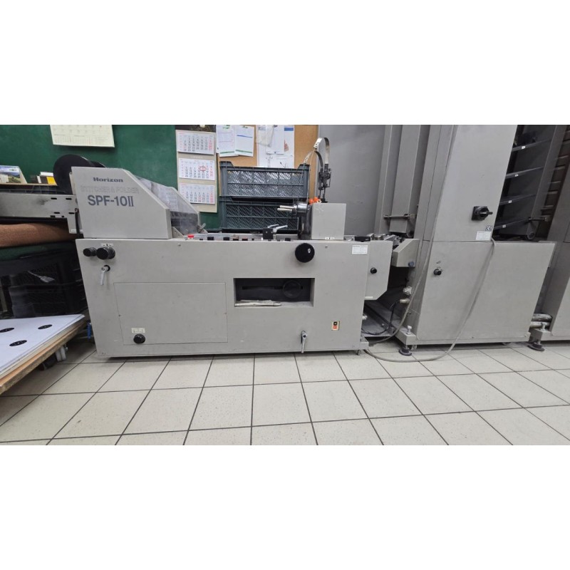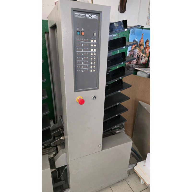 HORIZON MC-80A + MC80M + SPF-10II + FC-10II- BROCHURE LINE- MC-80A - MC-80M - THE LINE CONSISTS OF:- - HORIZON MC-80A + MC80M- MAX FORMAT: 318X470MM- MIN FORMAT: 110X160MM- SUCTION FEED- 8 SHELVES- RIGHT AND LEFT DISCHARGE- STACK HEIGHT 50MM- GRAMMAGE 40-270G- POWER SUPPLY 380V- WEIGHT 250 KG/TOWER- POWER SUPPLY 400 V- JAM, DOUBLE FEED AND NO FEED SENSORS.- - HORIZON SPF-10II- MAX FORMAT: 320 X 470 MM-- MIN FORMAT: 148 X 148 MM- WIRE STITCHING- FOLDING- TWO HOHNER HEADS- POWER SUPPLY 230V- WEIGHT 280KG- - HORIZON FC-10II (TRIMMER)- CUTS 120 PAGES- POWER SUPPLY 230V- WEIGHT 180KG- THE MACHINE COMES WITH: PJ-77 TRIMMER, OPERATING TOOLS, SPARE PARTS, DOCUMENTATION.-