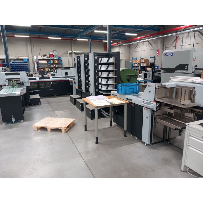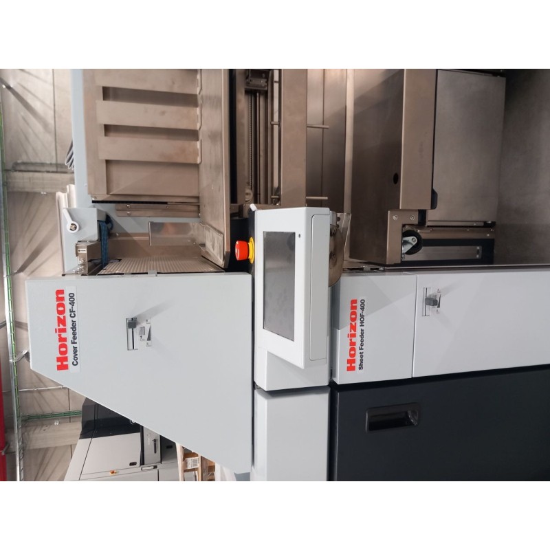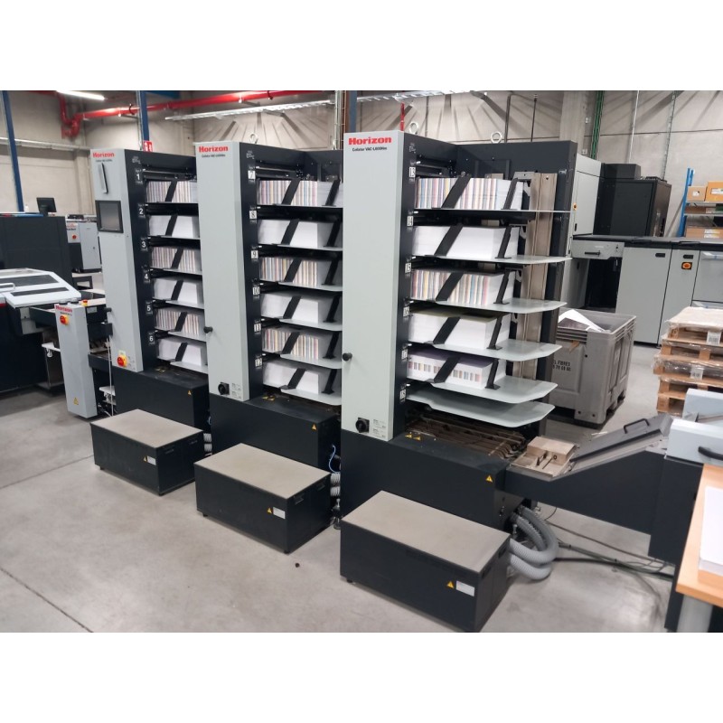Stitchliner Mark IV with multiple options- iCE operator interface- HOF400 highpile feeder- CF400 cover feeder- AC400 accumulator- HIF400 connecter- 3x towers VAC-L600Ha, VAC-L600Hm, VAC-L600Hm- each tower 6x stations /total 18- each tower with ESB-L600 Extra air blower- ST-40 + ST-CV/LG bypass stacker- ACF-50 accumulator folder- SPF-50 stitcher- SL6PS-40 6pages cover kit- 2x Omega heads 52-8S 6mm barrel- HTS-50 3knives trimmer- TB-30 chutes blower- HTS-TD40 Thickness detector- PK-30 preset kicker- HTS-ECV40 delivery conveyor- Complete with airpumps, transformers and manuals