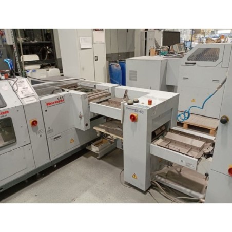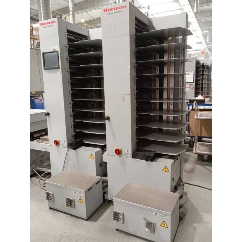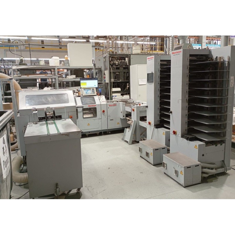 HORIZON STITCHLINER ST5500 - INTEGRATED BROCHURE PRODUCTION LINE- TWO VAC100 TOWERS- ST40 - STACKER FOR COLLETED SHEETS- VAC-100 x2- HTS-30 x1- ST-40 x1- ACF-30 x1- SPF-30 x1- MILEAGE: 18 254 847 COPIES- -