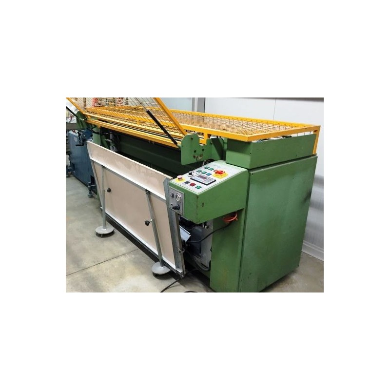 Pasquato TE15/DC- Sheeter suitable to cut bookbinding materials such as: cloth, synthetic leather, paper, stationary materials.- Unwinding of the material with NIP-rollers driven by a Inverter drive gear motor.- Decurler for materials on paper base. Slitting by shafted rotating knives.- Cross-cutting blades have a self-sharpening scissors action, it doesn?t require setting when changing thickness or type of material being cut.- Digitally operated pre-selection of cross-cutting length.- Fixed level , adjustable in angle delivery table with antistatic bar and air blower to facilitate stacking of the sheets.- Working width 1500 mm. Roll diameter 400 mm (max). Roll weight 50 Kg (max). Cutting speed 26 cuts/min