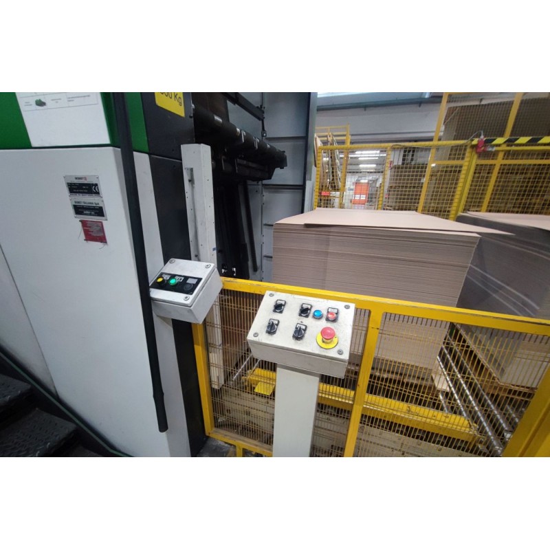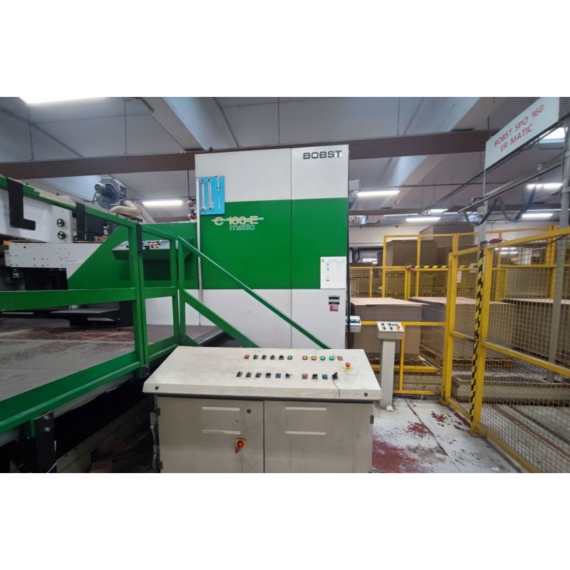 SPO 160 ER MATIC- MAX Size 1600 x 1100 mm- MIN Size 600 x 520 mm- MAX Production 7.500 SHEETS/H- MAX Pressure up to 400 t- Prefeeder Bobst C160 Matic motorized adjustment of punching pressure - Non stop feeder - Pull lay operator side - Push lay opposite side - Micrometers adjustable plate system - Stripping station automatic - Blanking station automatic - Automatic output pose separator - Preset table for off-machine preparation Blanking tools pile delivery of single packages pile height up to 2m automatic feeding of new pallets matic controls system