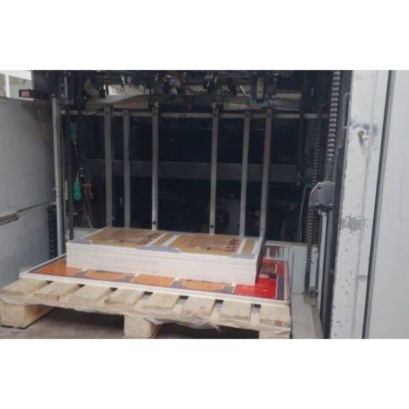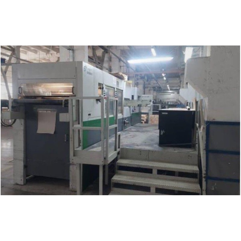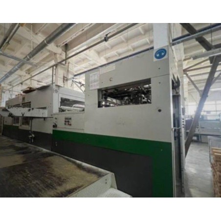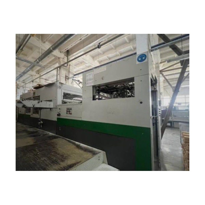 BOBST SP 104 ER DIE-CUTTER- DIECUTTER WITH STRIPPING AND BLANKING STATION- TECHNICAL SPECIFICATIONS:- PAPER MIN. 90 G/M2- CARDBOARD MAX. 2000 G/M2- CORRUGATED BOARD MAX. 4 MM- MIN. SHEET SIZE: LXW 350 X 400 MM- MAX. SHEET SIZE: LXW 740 X 1040 MM- MAX. DIMENSIONS OF CUTTING DIE: MAX. LXW 725 X 1040 MM- CUTTING FORCE: 250 TONS- RUNNING SPEED: MAX. 8.000 S/H.- CENTERLINE FOR JOB QUICK-CHANGE- ADJUSTABLE CENTERING AT THE STRIPPING AND AT THE DELIVERY,- BOBST-ELECTRONIC MACHINE OPERATIONG SYSTEM C.U.B.E. : (CONTROL UNIT BOBST ELECTRONIC)- NON STOP FEEDER,- STEEL PLATE,- DOUBLE SHEET SENSOR,- LEFT HAND PULL LAY, RIGHT HAND PULL LAY,- MICROMETIC ADJUSTMENT,- CENTERLINE,- DOUBLE ACTION STRIPPER, BLANKING STATION,-
