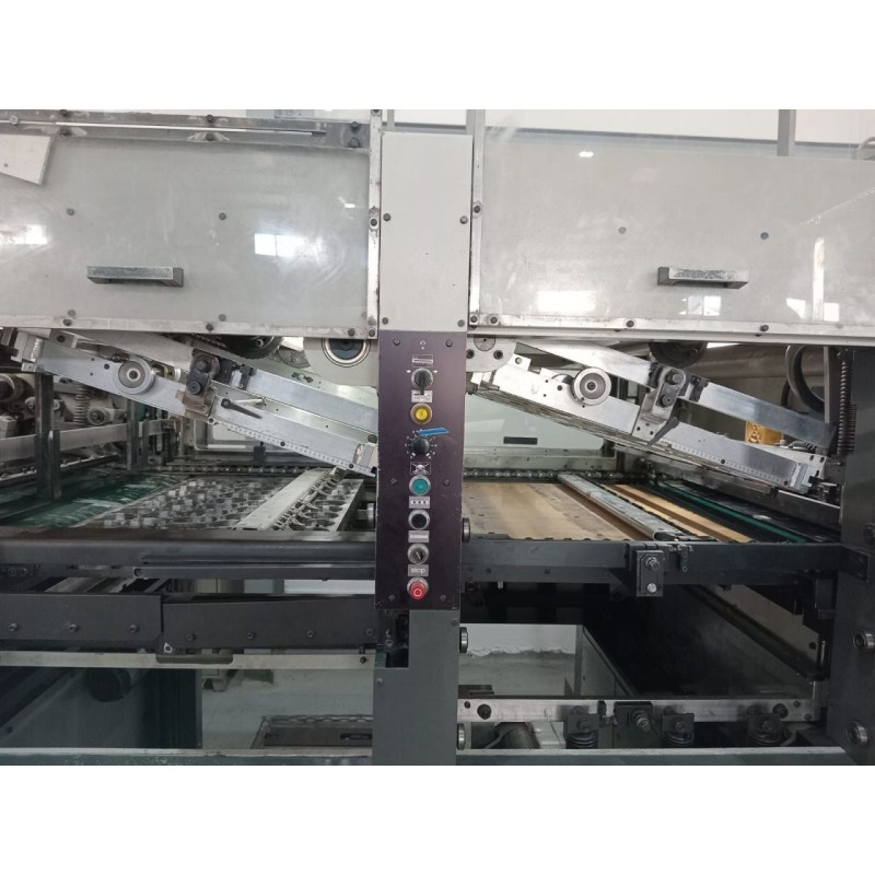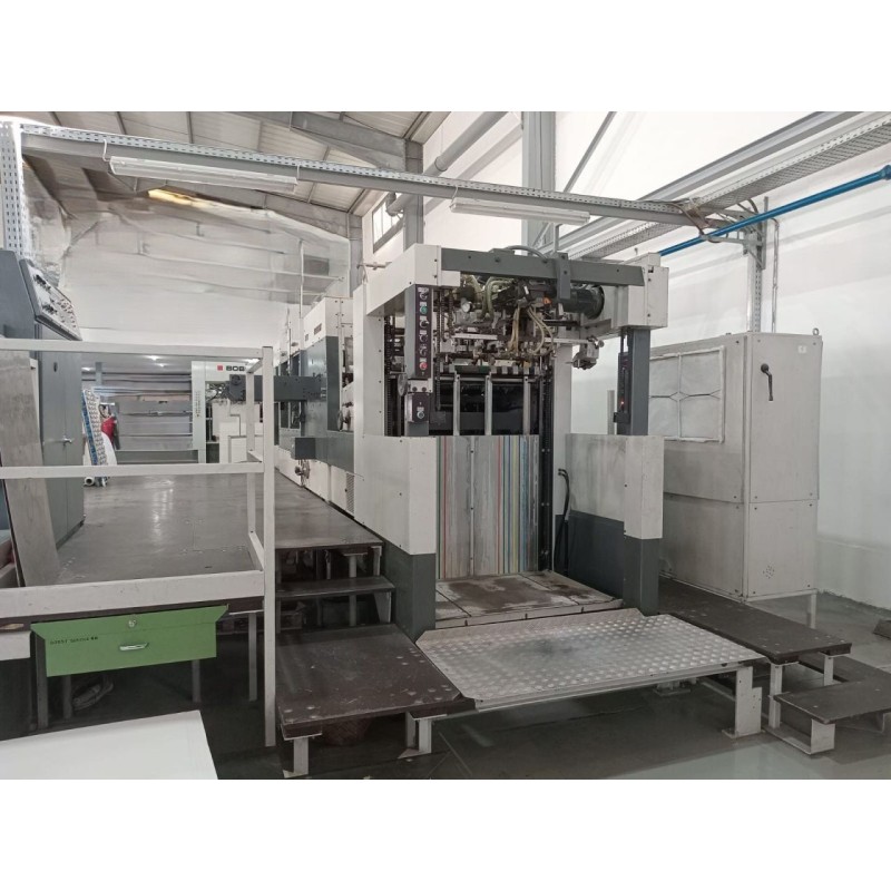 Max size: 1020 x 720- Min size: 400 x 300- Max speed: 6500 tab/h- Optimal speed: 5000 tab/h- Diecutting: Full carton, B, E, F i N wave- Die Cutting, Embossing, Stripping - Blanking Base / Feeder - Centreline control - Micrometric fine adjustment device. - Manual Non-stop feeder - Full sheet delivery - Cutting force 250T - 1 pull lay guide O.S. Punching / waste stripping station 1 set of standard frame with tools - Standard punch plates utting plate - Micro metric system wer frames with tools - Non-stop delivery - Automatic pallet changing system - Oil conditioner