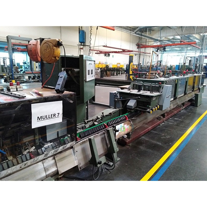 Muller Martini Type 300 - YEAR ABOUT 1980- 5 FEEEDERS 279- 2 STITCHING HEADS- 1 COVERFEEDER 1528- 1 TRIMMER 251- 1 STACKER 310- 1 MOSCA ROTR50 YEAR 2011- 1 PALLETISER GOMES