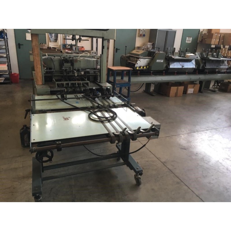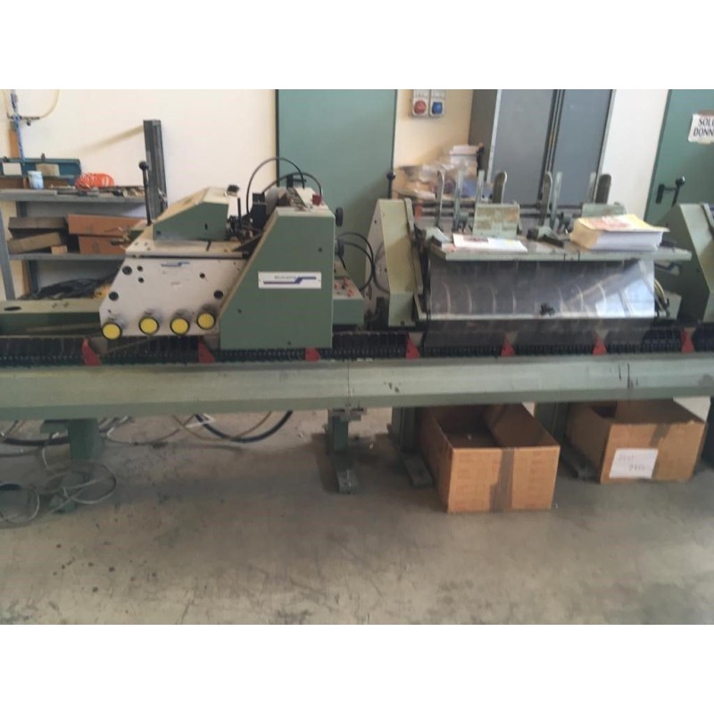 1 stitching unit, type 1509 with 2 stitching heads- 4 feeders type 1516- 1 x three-knife trimmer, type DSS- 1 x coverfeeder 1528 year 2002- max. speed 8.000 copies/h- max. size 365x230mm- min. size 148x105
