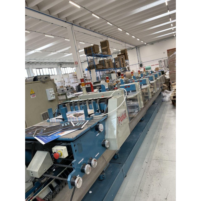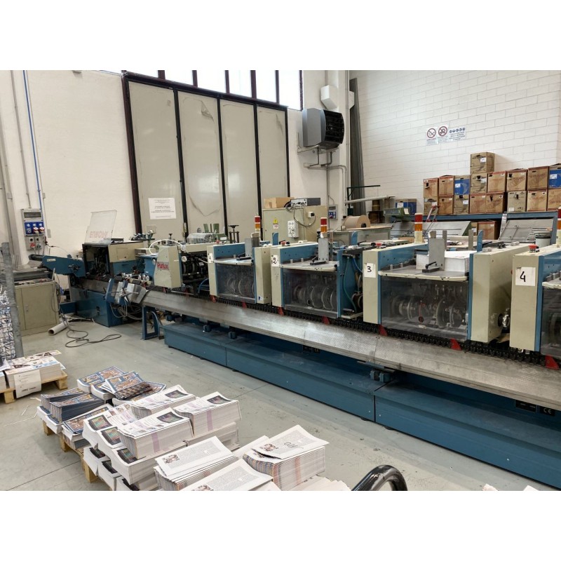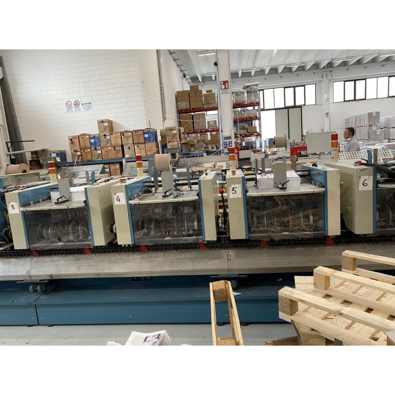 6 feeders ZYDY440E- cover feeder- Three-Knife trimmer mod. QS8E - Max Format Untrimmed 300x440 mm- Min Format Untrimmed 75x148 mm- Max Format Trimmed 311x450 mm- Min Format Trimmed 90x158 mm- Max Book Thickness 8 mm- Min Book Thickness 3 mm- Mechan Speed 10.000 brochures/h-