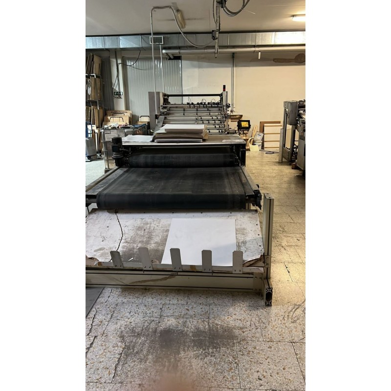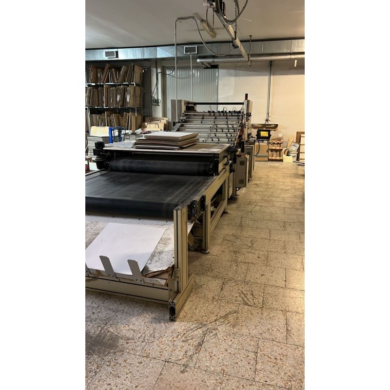 Lamina Typ 1416 FA- Max Size widht x lenght 140?160 cm- Min Size widht x lenght 20?35 cm- Top Sheet thickness 130 to 450 gsm- Bottom Sheet thickness from 250 gsm to 10mm- Corrugated from 0.6-10mm- Power 5Kw- Air Requirements 6bar- Machine Size (incBandStacking Table):- Width 2350mm- Lenght 5900mm-