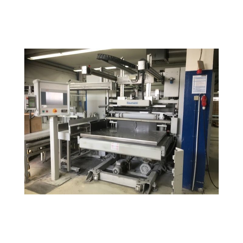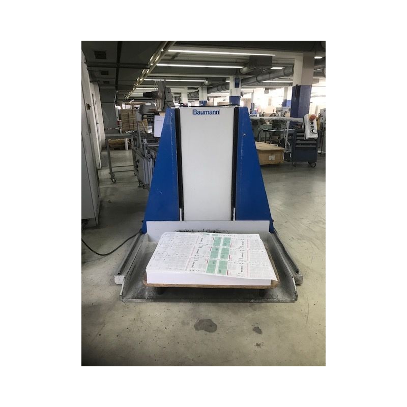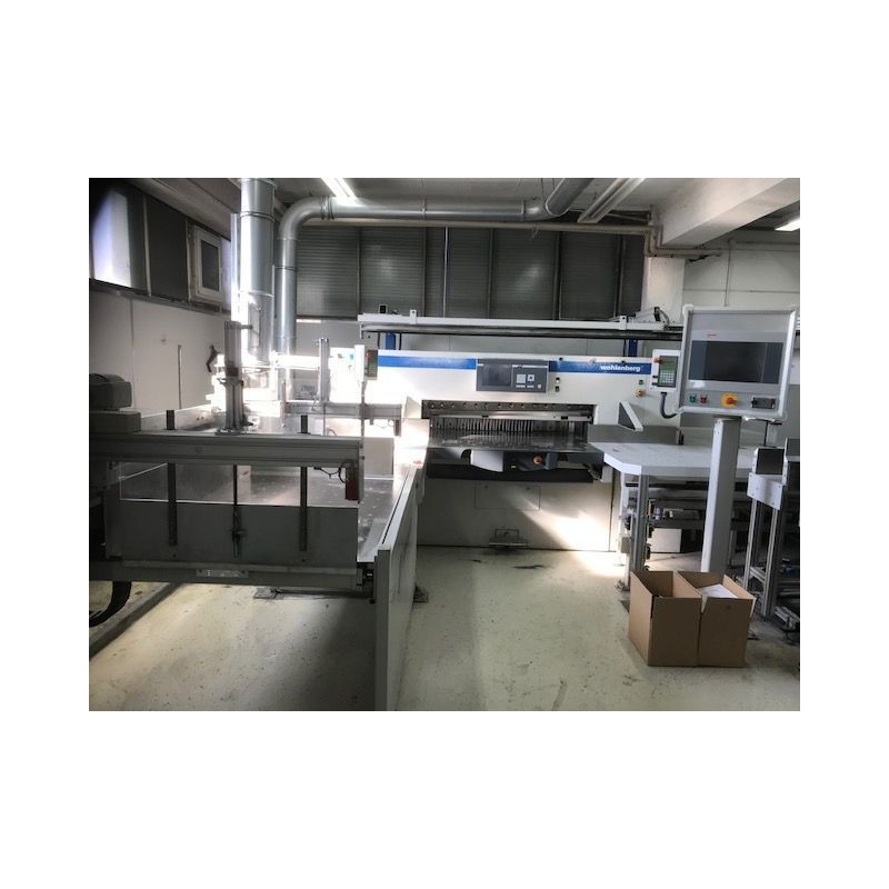 WOHLENBERG cutting machine 137 PTC- chromed air table- 2 air side tables- Baumann NUP 1000 pile lifter- Baumann BASA 3 fully automatic vibration system- Baumann gripper system type APS-3- Behind table assembly type BFS 3 R- Baumann stacker BA 3