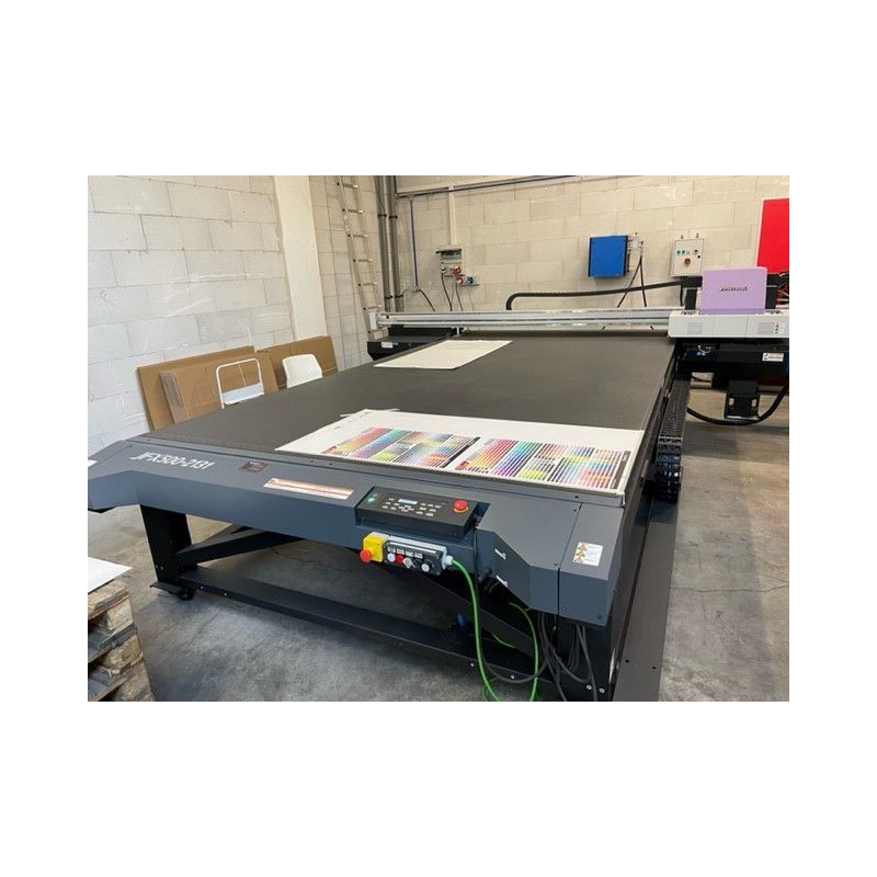 Flatbed UV LED Printer JFX500- production speeds of up to 60sqm/h- 4 colors+ white +lucida/opaca- Maximum print area 2100 x 3100 mm- Printing resolutions 300 dpi, 600 dpi, 900 dpi, 1200 dpi- Ink type LUS-120 Superior durability and flexibility (CMYK + W)- LUS-150 Stretchable (150%) UV ink (CMYK + W)- LUS-200 Stretchable (200%) UV ink (CMYK + W)- LH-100 Hard UV Ink (CMYK + W)- Ink supply system Supplied by 2L ink station- Media Size 2100 x 3100 mm (w x d)- Media thickness Up to 50 mm- Media weight Up to 50 kg / sqm- Media set device Air suction by vacuum- Equipped with UV LED- -
