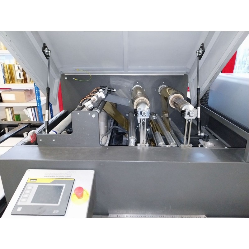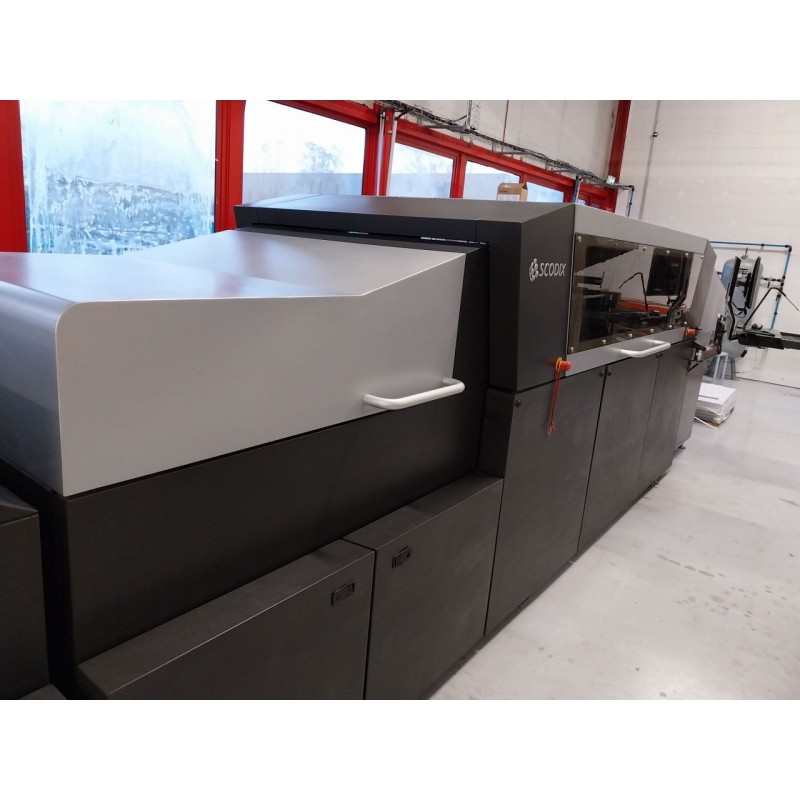Fully refurbished in 2024 by Scodix (new inkjet printheads).- With film unit- Automatic feeder- Automatic stacker- Media weight: 135 - 675 g/m?.- Media thickness: up to 700 microns- Bar code reader- Resolution: Up to 2,540 x 450 dpi- Scodix RSP: Up to 4 CCD cameras, automatic positioning- Substrates: Offset, digital, plastic, laminated and coated substrates- Minimum format: 297 x 420 mm- Maximum format: 545 x 788 mm- Maximum print image: 504 x 748 mm- Polymer layer thickness: 5 - 250 microns-