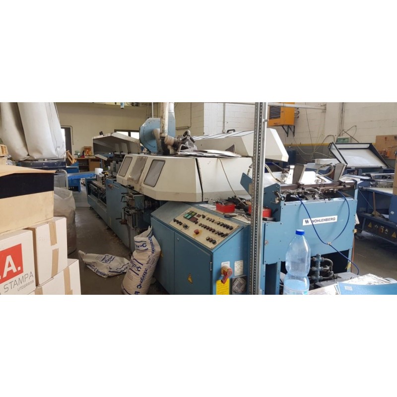 WOHLENBERG GOLF 370- binder 14 clamps- Maximum book block size: 370 x 320 x 50 mm - Maximum open cover size: 380 x 640 mm - Minimum book block size: 140 x 105 x 2 mm - Minimum open cover size: 140 x 212 mm - 15 Gathering stations - Maximum mechanical speed: 5.500 cycles/hour - trimmer wohlenberg fs100- gauzing station- Hot Melt Spine Glue and Side Glue - stacker tecnograf M2X year 2003- -