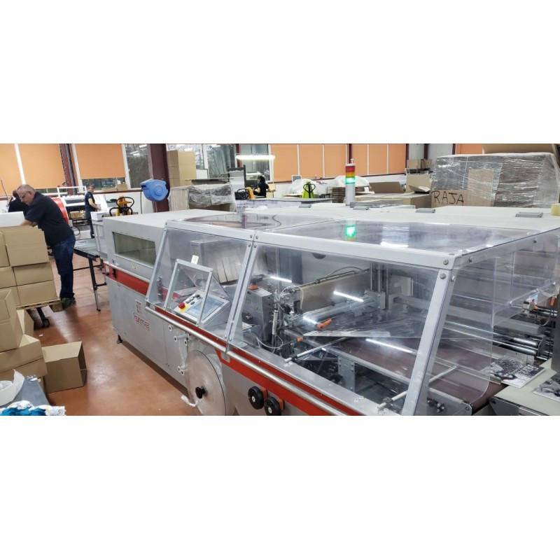 SITMA WM60 FILM WRAPPING - TOUCH SCREEN DISPLAY - PROGRAMS- SHRINK TUNNEL WITH CHAMBER OPENING- CONVEYOR - POLIOLEFIN AND POLYETHYLENE FILM UP TO 50 MICRONS- MAX SIZE 420 x 420 mm- MIN SIZE 75 x 100 mm- MAX SPEED 3600 P/H- HOUR OF PRODUCTION = 6218 HOURS