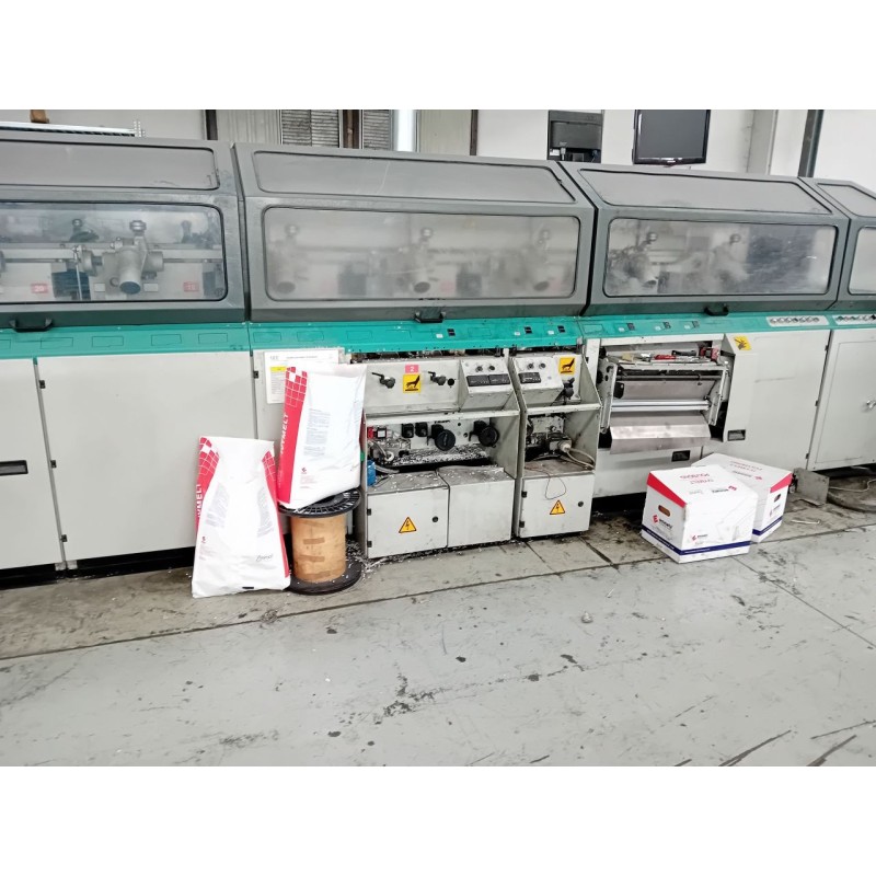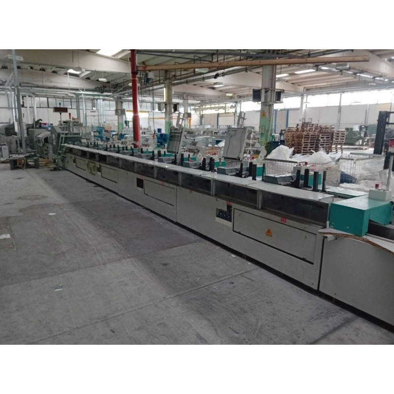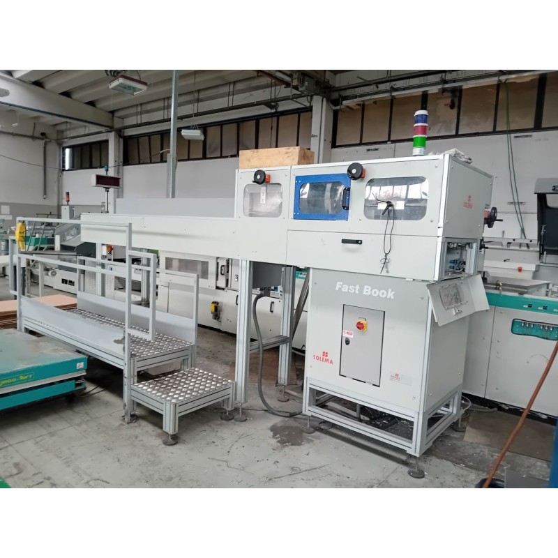 KOLBUS KM 410B- Gathering Machine ZU 841.B with:- handfeeding, 12 stations with optical sheet control, 1 feeder for signatures with laps to be bound, 1 card gluer, set up element, reject unit AS 841 to the left, transfer to the binder and BECKER Air center VariAir- - Perfect Binder KM 410.B with:- copilot system with touch screen, 30 clamps, main milling station, 3 spine preparing units, interchangeable Hotmelt spine gluing unit, Premelter Robatech ICS C160, interchangeable PUR nozzle spine gluing unit EP 48V,- Nordson PUR premelter spine gluing unit DuraDrum DK 200, interchangeable Hotmelt side gluing unit 3 mm, Premelter Robatech ICS C 30, non-stop stream cover feeder NA 400.B with feeding conveyor, scoring station, 2 pressing stations and lay down device- SOLEMA DRYING TOWER- FASTBOOK SOLEMA- 25m conveyors- 3 KNIVES TRIMMER MULLER MARTINI ZENITH-