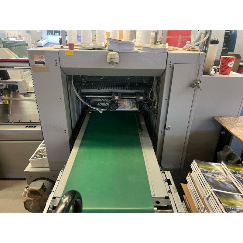M?LLER MARTINI VENTURA MC ?WITHOUT STACKER- COUNTER: 72 MLN- SINGLE AND DOUBLE USE PRODUCTION POSSIBLE- TOUCH-SCREEN OPERATION- COMMANDER CONTROL- DISPLAY FOR EASY OPERATION OF THE MACHINE- DATA RECORDING- ASIR 3- CONNEX SYSTEM- DOUBLE SEWING SADDLE WITH PAIRS OF PUNCHES, NEEDLES AND HOOKS (MAX. 13 PUNCTURES)- INTEGRATED THREAD WELDING DEVICE FOR PERMANENT BINDING OF THE BOOK BLOCK- INJECTION PUMP FOR GENERATING COMPRESSED AIR 6 BAR- SUCTION OPENING 2 + 2 FOR PRODUCTS WITH/WITHOUT FOLD, 1 ? 4 SUCTION CUPS-