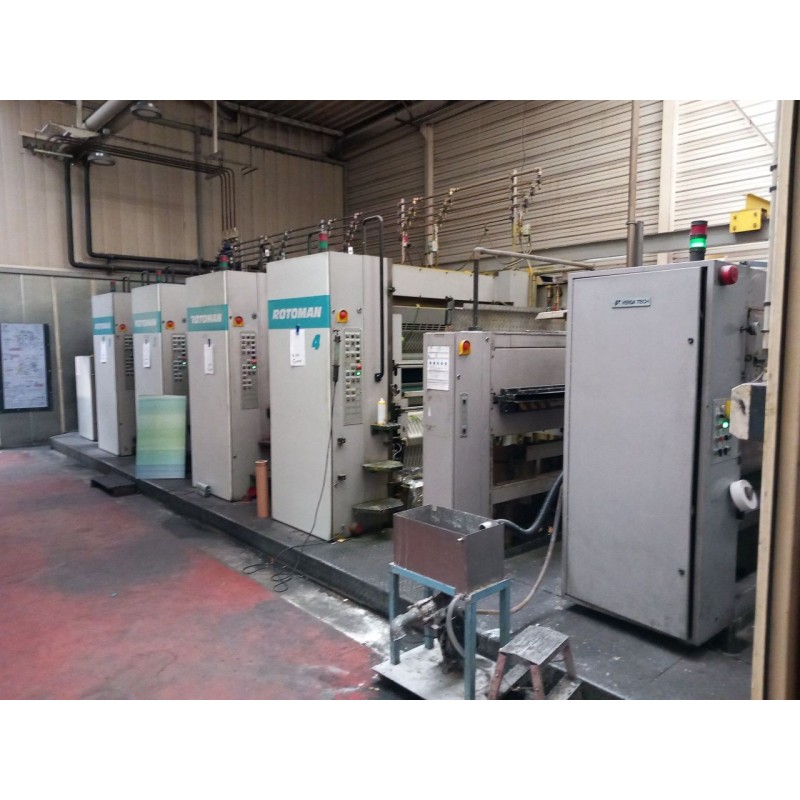WEB/WEB ROTOMAN N 16- Web width 965mm- Cut off 630mm- Speed 60000- - Megtec splicer- Infeed unit- 4x printing groups- Auto plate bender- PPL- Technotrans delta.d- Baldwin washer- Versatech gumming and perforating - DualDry TNV with integrated afterburner- Chill rolls x6- Superstructure- Grafikontrol register control- Amal Rewinder- Console RCI